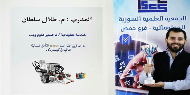 وأشار إلى أنه في عام 2019 كلف مديراً لنادي الروبوت في فرع الجمعية العلمية السورية للمعلوماتية بحمص، وبعد سنوات من عمله كمدرب يعمل حالياً كمشرف على باقي الفرق بالجمعية لوضع المناهج والخطط وإقامة المعارض ومساعدة المدربين ضمن عمل الفريق الواحد، وخلال مسيرته في النادي لأربع سنوات حقق أكثر من فوز ومشاركة بالمسابقات الوطنية للروبوت.