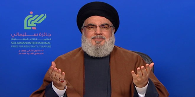 وأوضح السيد نصر الله في كلمة له اليوم خلال حفل توزيع (جائزة سليماني العالمية للأدب المقاوم) أن مجموع الشهداء في سورية ولبنان والعراق وفلسطين واليمن هو الذي ألحق الهزيمة بمخطط الاحتلال الأمريكي وربيبتها “إسرائيل”، ومن ثم تنظيم “داعش” الإرهابي الذي أوجدته واشنطن.