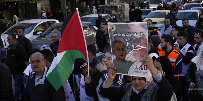 وكانت سلطات الاحتلال أفرجت فجر اليوم عن الأسير ماهر يونس 61 عاماً من قرية عارة داخل الأراضي الفلسطينية المحتلة عام 1948، بعد 40 عاماً في معتقلاتها، فيما انتشرت قواتها في محيط منزل عائلة يونس قبيل وصوله إلى منزله، في محاولة لمنع أي احتفال بتحرره بعد كل سنوات الاعتقال هذه.