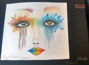 وفي مجال الرسم عرضت كل من الطفلتين ليان ولارا غياث غانم 12 لوحة بألوان زيتية وخشبية تناولت مواضيع مختلفة.
