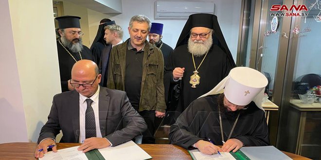 حضر توقيع الاتفاقية محافظ دمشق المهندس محمد طارق كريشاتي وسفير روسيا في دمشق ألكسندر يفيموف ورئيس صندوق حفظ التراث والثقافة المسيحية أيغور سكوبينكو وفعاليات دينية واجتماعية.