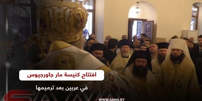 افتتاح كنيسة مار جاورجيوس في عربين بعد ترميمها