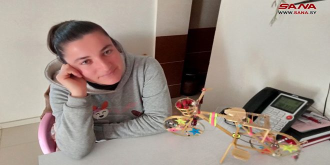 سعت الشابة إلى إعادة تدوير الأشياء التالفة لديها في المنزل من ألبسة أو أحذية أو إكسسوارات وإدخال لمسة فنية عليها لصنع مجسمات وتشكيلات هندسية جميلة كإنشاء مجسم لمنزل أو أرجوحة وبراويز للصور وفراشات ودراجة هوائية، مبينة أن إنجاز أي مجسم يتطلب منها ساعات أو وأيام من العمل الدؤوب مع التركيز على تناسق ودقة التنفيذ واستخدام بعض الأدوات في عملها منها السيليكون الحراري “فرد كهربائي” ومقص وزهور من البلاستيك لاستخدامها كإطار للبراويز، إضافة إلى الأصداف الملونة التي تقذفها أمواج البحر على الشاطئ، وبريق وورق السولوفان وألواح من الخشب المعاكس كأرضية للوحاتها.
