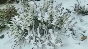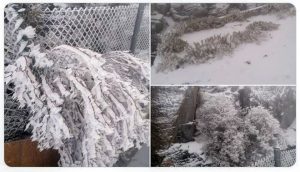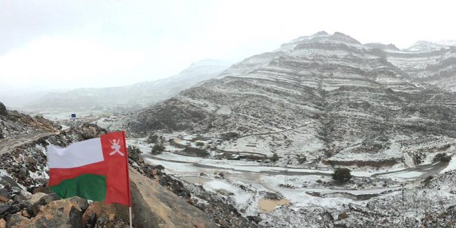 وأظهرت الصور ومقاطع الفيديو المتداولة تراكم الثلوج على قمة الجبل الذي يبلغ ارتفاعه ثلاثة الاف متر فوق مستوى سطح البحر في حين سجلت محطة الرصد العمانية درجة حرارة بلغت أربع درجات تحت الصفر خلال الساعات الماضية.