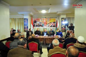 وأشار ممثل حركة الجهاد ومسؤول مهجة القدس في سورية إسماعيل السنداوي في كلمة إلى أن بسام السعدي قائد استثنائي، ومثال للوحدة الوطنية والتضحية من أجل القضية الفلسطينية، مؤكداً بقاء قضية الأسرى الفلسطينيين على رأس الأولويات حاضرة وفاعلة في المؤسسات الأممية، لفضح جرائم الاحتلال الصهيوني بحقهم، والإفراج عنهم، إضافة إلى مواصلة أبناء الشعب الفلسطيني وقواه مقاومته والنضال بكل الأشكال، حتى تحرير أسرى البواسل من كل السجون الصهيونية.