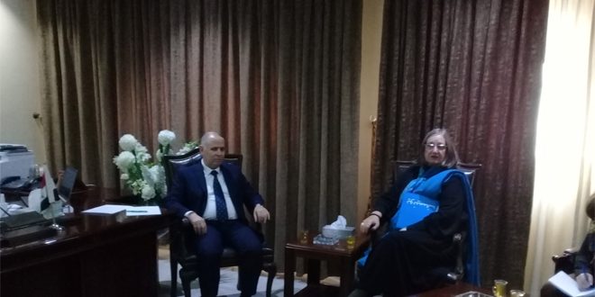 بحث وزير الموارد المائية الدكتور تمام رعد اليوم، مع ممثلة منظمة الأمم المتحدة للطفولة (يونيسيف) في سورية أنجيلا كيرني مجالات التعاون بين الوزارة والمنظمة وخطط العمل في العام الحالي.