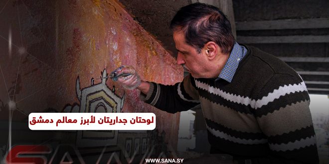لوحتان جداريتان لأبرز معالم دمشق تحت جسر فكتوريا