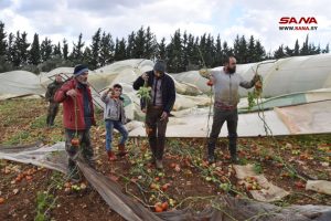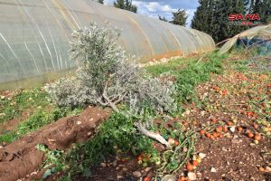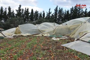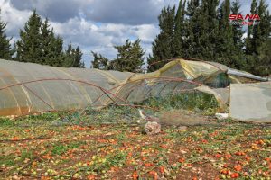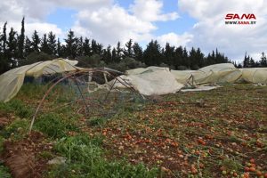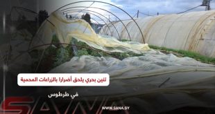وبين رئيس دائرة الزراعة في طرطوس المهندس سهيل الشيخ في تصريح لمراسل سانا، أنه جراء الأحوال الجوية التي تمر بها مناطق “الهيشة وسهل ميعار شاكر والمنطار وسهل يحمور وسهل عكار والدكيكة وعرب الشاطئ” وقعت أضرار كبيرة في البيوت البلاستيكية، من حيث الهياكل وشرائح النايلون والمحاصيل، مشيراً إلى أن أغلب المحاصيل الزراعية في مرحلة الانتاج، ما أدى إلى تضررها بنسب متفاوتة من منطقة إلى أخرى.