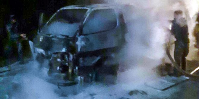 احترق سرفيس بالكامل اليوم على أوتوستراد جبلة اللاذقية قبل مفرق الهنادي نتيجة ماس كهربائي.
