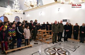 بدوره وجه الأب دانيال نعمة كاهن رعية كنيسة مار جاورجيوس في مدينة عربين الشكر للأصدقاء الروس على تقديم المساعدات كدعم معنوي ومادي للأطفال الموجودين وللأهالي، لافتا إلى أن المدينة مرت بظروف صعبة، ولكنها اليوم بفضل انتصارات الجيش العربي السوري وبدعم أصدقاء سورية تعيش بأمان.