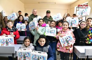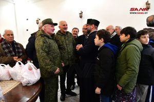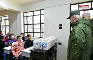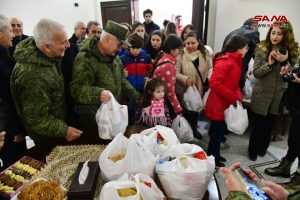 وزع مركز التنسيق الروسي اليوم مجموعة من السلات الغذائية والقرطاسية في مدرسة الأهلية الخاصة التابعة لبطريركية أنطاكية وسائر المشرق للروم الأرثوذكس، وفي كنيسة مار جاورجيوس في عربين بريف دمشق.