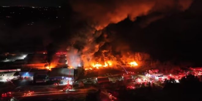 اندلع حريق هائل نتيجة خروج قطار عن مساره في إيست بلاستين بولاية أوهايو الأمريكية.