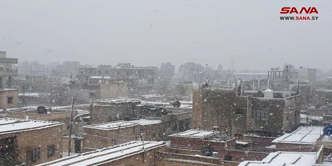 من الهطولات الثلجية في مدينة الدرباسية شمالي الحسكة