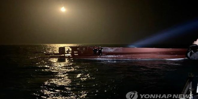 ونقلت وكالة الأنباء الكورية الجنوبية يونهاب عن وزارة الداخلية قولها في بيان:”إن السفينة تزن 42 طناً انقلبت في المياه ليلة أمس قبالة سواحل مقاطعة سينان في منطقة جيولا الجنوبية”، لافتة إلى تمكن سفينة قريبة من إنقاذ ثلاثة من أفراد الطاقم، فيما لايزال تسعة آخرون بينهم أجنبيان في عداد المفقودين”.