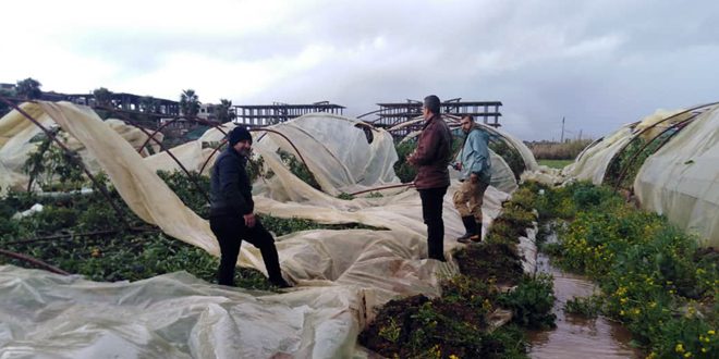 يذكر أن الأحوال الجوية التي تمر بها المحافظة أدت أمس لأضرار بالزراعات المحمية في ريف بانياس.
