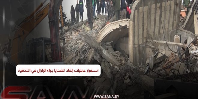 استمرار عمليات إنقاذ الضحايا جراء الزلزال الذي ضرب سورية فجر اليوم