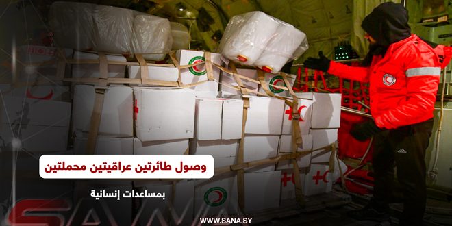 وصول طائرتين عراقيتين محملتين بمساعدات إنسانية لمتضرري الزلزال
