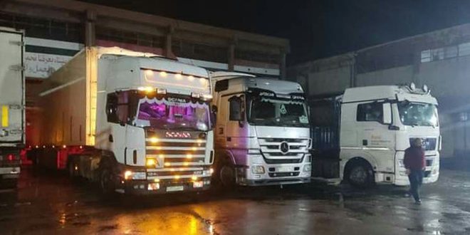 وقامت التجارة الداخلية بتسيير 4 برادات “شاحنة” من فرع دمشق إلى محافظتي حلب واللاذقية تحوي على سلل غذائية ومستلزمات أساسية للمتضررين جراء الزلزال.