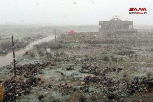 يذكر أن سماكة الثلوج في بلدة حضر بلغت 30 سم.