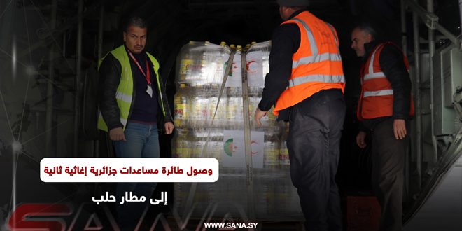 مراسل سانا: وصول طائرة جزائرية ثالثة لمطار حلب محملة بالمساعدات