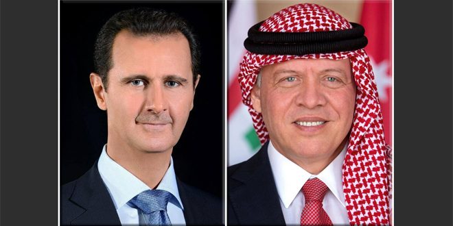 تلقى السيد الرئيس بشار الأسد اتصالاً هاتفياً من جلالة الملك عبد الله الثاني ملك المملكة الأردنية الهاشمية، تقدم فيه للرئيس الأسد وللشعب السوري بأحرّ التعازي بضحايا الزلزال، وخالص المواساة لذويهم وعائلاتهم، متمنياً للمصابين الشفاء العاجل.