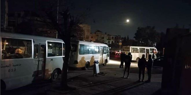 قام فرع الاتحاد الوطني لطلبة سورية في جامعة البعث بتأمين باصات لنقل الطلاب من محافظة حلب إلى محافظاتهم.