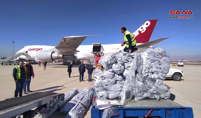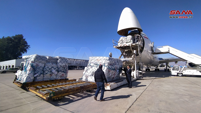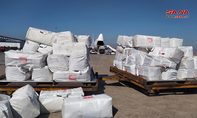 ووصلت مساء اليوم طائرة مساعدات صينية إلى مطار دمشق الدولي تحمل مواد إغاثية طبية لمتضرري الزلزال.
