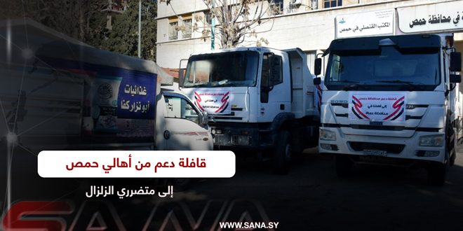 تسيير قافلة الدعم من أهالي حمص إلى متضرري الزلزال