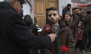 وفي مقابلة مع مراسل سانا في موسكو قال الطالب السوري جمال محمد: “إننا تفاجأنا بمدى محبة الشعب الروسي لسورية، حيث جمعت المبادرات الأهلية كميات هائلة من المساعدات التي لم نكن نتوقعها”، مضيفاً: “إن الشعب الروسي والمغتربين في روسيا من عرب وأجانب متعاطفون مع سورية وشعبها”.