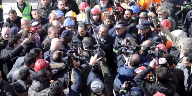 2023-02-10 من تصريح الرئيس الأسد لوسائل الاعلام في أحد مواقع إزالة الأنقاض وانتشال المصابين في مدينة حلب 2023-02-10Afraa