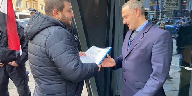 وقام بتسليم البيانين كلاً من فراس محفوض رئيس فرع الاتحاد في رومانيا ويوسف عبد الرحمن رئيس فرع الاتحاد في بلغاريا.