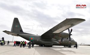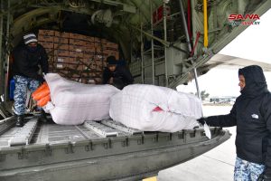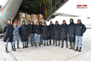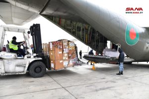 كما وصلت مطار دمشق الدولي طائرة مقدمة من جمهورية بنغلاديش محملة بمساعدات للمتضررين من الزلزال، تتضمن 10 أطنان من المواد الغذائية والخيم والبطانيات والأدوية.