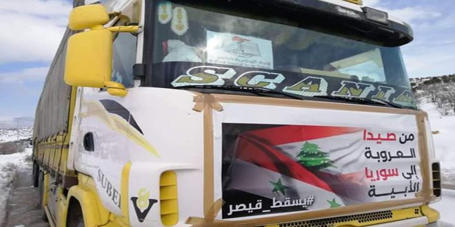 وتم تجهيز القافلة من قبل الأشقاء اللبنانيين في مدينة صيدا بالتعاون مع فرع الاتحاد الوطني لطلبة سورية في لبنان والسفارة السورية.