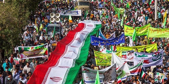 أكد المشاركون في المسيرات الشعبية الحاشدة بمناسبة الذكرى الرابعة والأربعين لانتصار الثورة الإسلامية في إيران ضرورة دعم شعوب المنطقة في سورية وفلسطين ولبنان واليمن والدفاع عنهم، مشددين على أهمية الوحدة الوطنية لمواجهة أعداء البلاد.