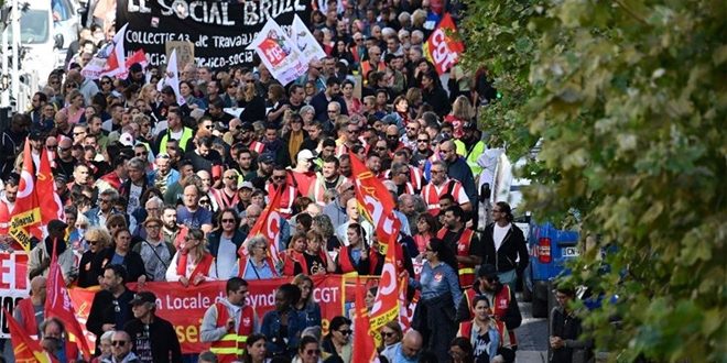 شهدت مدن فرنسية عدة اليوم موجة إضرابات ومظاهرات أطلقتها النقابات العمالية، احتجاجاً على خطط الرئيس إيمانويل ماكرون لرفع سن التقاعد.