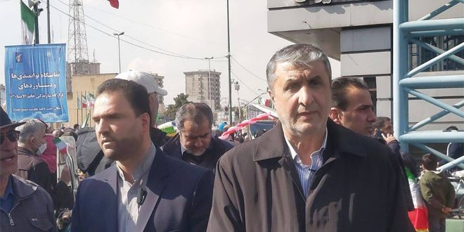 ونقلت وكالة الأنباء الإيرانية “إرنا” عن إسلامي قوله في تصريح اليوم: “إن الأعداء يحاولون من خلال طرح قضايا وهمية إرباك حركة التقدم والازدهار في إيران”، موضحاً أن “العدو لطالما اتهم إيران بالسعي وراء إنتاج قنبلة نووية أو وجود مواقع نووية غير معلنة أو برامج سرية، وذلك من أجل حرف مسيرة التقدم العلمي والتقني للبلاد”.