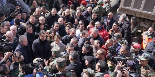 2023-02-11 زيارة الرئيس بشار الأسد والسيدة أسماء الأسد لموقع عمليات الإنقاذ وإزالة الأنقاض في حي الغزالات بجبلة 2023-02-11Afraa