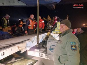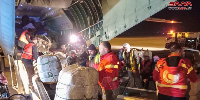 وصلت إلى مطار حلب الدولي مساء اليوم طائرة كازاخستانية محملة بالمساعدات الإنسانية للمتضررين من الزلزال.