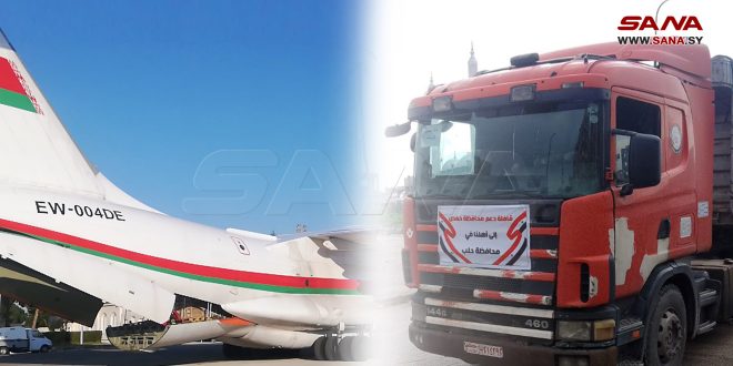 ???????? مراسل سانا في حلب: وصول قافلة تضم شاحنات محملة بمختلف المواد الإغاثية والغذائية والألبسة ومعدات الدفاع المدني مقدمة من حركة الناصريين المستقلين (المرابطون) والتنظيم الشعبي الناصري في لبنان.