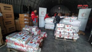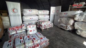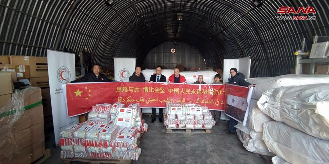 تسلمت منظمة الهلال الأحمر العربي السوري مساعدات إنسانية لدعم متضرري الزلزال مقدمة من أبناء الجالية الصينية في سورية، وذلك في مبنى مشروع مسار بدمشق.