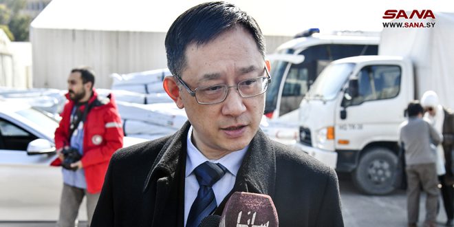 وأعرب السفير الصيني عن تعازي الحكومة الصينية وشعبها لسورية حكومة وشعباً في مصابها، مؤكداً أن الجانب الصيني قام بتفعيل آلية المساعدات الإنسانية العاجلة بشكل فوري، وقرر تقديم 30 مليون يوان من المساعدات العاجلة، بما فيها مساعدات نقدية قيمتها مليونا دولار ولوازم الإنقاذ التي يحتاج إليها الجانب السوري.