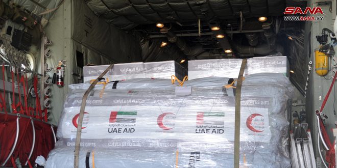 وصلت ثلاث طائرات إماراتية إلى مطاري دمشق واللاذقية الدوليين اليوم، تحمل مساعدات إغاثية للمتضررين من الزلزال.