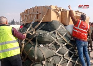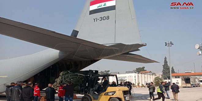 وصلت اليوم طائرتان عراقيتان إلى مطار حلب الدولي محملتان بمساعدات إغاثية للمتضررين من الزلزال .