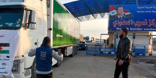 أعلنت الأمانة السورية للتنمية أنها أرسلت أكثر من ثلاثة آلاف طرد غذائي، مقدمة من شركتي آغاتي والدرة للمنتجات الغذائية في الأردن إلى محافظات حلب وحماة واللاذقية، بعد ساعات من تسلمها عبر معبر نصيب الحدودي.