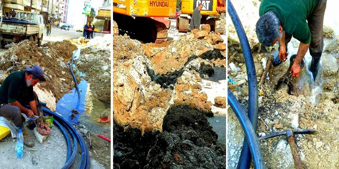 تتابع ورشات مؤسسة المياه في اللاذقية ووحدة مياه مدينة جبلة أعمال صيانة خطوط المياه، للمباني المتضررة جراء الزلزال.