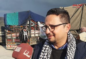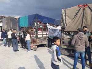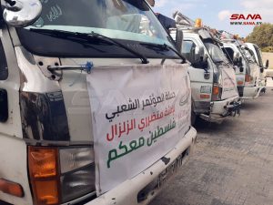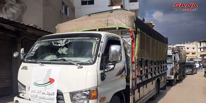 بدوره رئيس الحملة الإغاثية الدكتور محمد ياسر عمر لفت إلى أن قافلة المساعدات المحملة بمواد غذائية وأدوية وحرامات تعبير عن تعاطف الشعب الفلسطيني ووقوفه مع الشعب السوري المنكوب، مؤكداً أن هذا شعور جميع الفلسطينيين لأن سورية كانت وما زالت داعمة للقضية الفلسطينية.