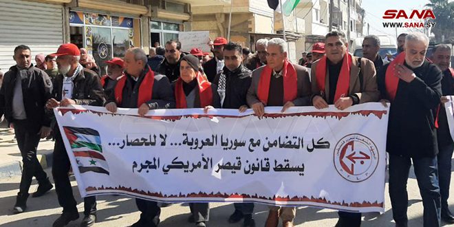 نزار القاضي مسؤول الجبهة باللاذقية وحلب لفت إلى أن الوقفة فرصة لتفعيل الضغط لرفع العقوبات الظالمة، وإسقاط قانون قيصر الأميركي الذي طال الشعب السوري والفلسطينيين الموجودين فيها، والذي يعاني منذ أكثر من عشر سنوات بسبب الحرب الظالمة عليه.