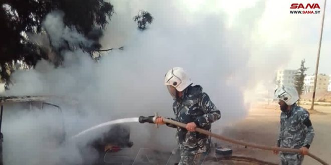 أخمد فوج إطفاء درعا مساء اليوم حريقاً نشب في سيارة خاصة على طريق الخمان بالقرب من ضاحية اليرموك بمدينة درعا.