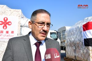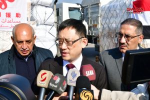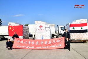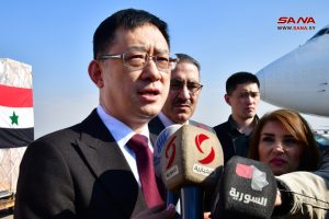 وبعد توقيع بروتوكول استلام المساعدات المرسلة لمتضرري الزلزال من الحكومة الصينية إلى الحكومة السورية في مطار دمشق الدولي أوضح سفير جمهورية الصين الشعبية بدمشق “شي هونغوي” في تصريح للصحفيين أن الطائرة تحمل على متنها 80 طناً من المساعدات الإنسانية، وتتضمن أجهزة تنفس ومعدات لإنتاج الأوكسجين ومواد إغاثية، مؤكداً أن حكومة بلاده ملتزمة بتقديم المزيد من المساعدات الغذائية والطبية لدعم جهود الحكومة السورية لتجاوز كارثة الزلزال.