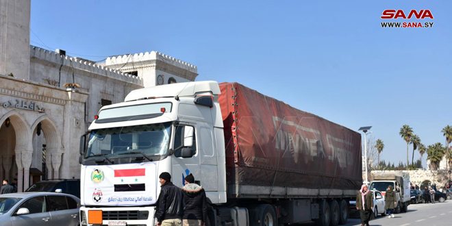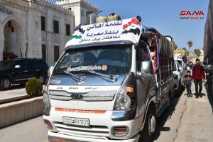 وأوضح نائب رئيس المكتب التنفيذي لمحافظة ريف دمشق جاسم المحمود لمراسل سانا أن القافلة تضم أربع شاحنات محملة بالمواد الغذائية والإغاثية، تم تسليمها للجهات المعنية بمحافظة حماة، ليتم تسليمها للمواطنين المتضررين جراء الزلزال، مبيناً أن هذه هي القافلة الخامسة المسلمة من محافظة ريف دمشق إلى المحافظات المتضررة جراء الزلزال، والأولى لمحافظة حماة.